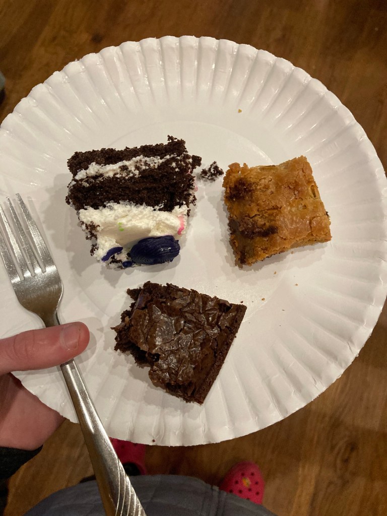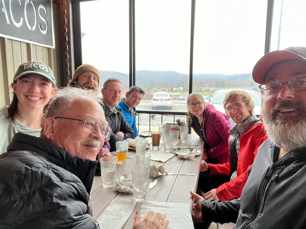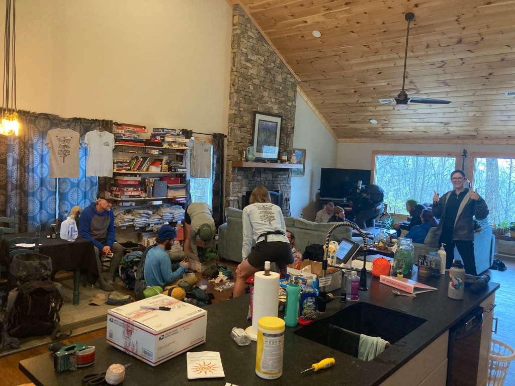 This place absolutely rocks. It has been such a wonderful stay, with great amenities and a fantastic community of hikers. There are two sweet cats here, and dogs, and plenty of massage equipment, and musical instruments to play! The hostel shuttles to several points on the trail as well as into the town of Hiawassee, Georgia. After we got checked in and showered, Sophie and I took the shuttle into Hiawassee to resupply and get an early dinner with some trail friends, new and old. We ate at an all-you-can-eat buffet, which had Southern-style food, and really leaned into a Gone With the Wind theme (hmm…). We reconnected with someone we had met our first night, now going by Dr. Pepper, and made some really cool new friends! Lefty and Helium are a pair who have previously hiked the PCT and the CDT, so will finish up their Triple Crown with the AT this year. They were very humble and helpful, which has not been a given for people with a lot of prior thru-hiking experience. They’re awesome. Then there’s Trinity, who is attempting a Calendar Year Triple Crown in 2023! It was awe-inspiring to hear about her preparation for such a crazy undertaking. Best wishes to Trinity! Back at the hostel, we played some Telestrations to close out the night.