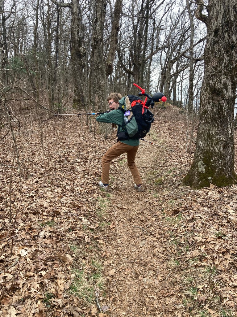 It felt really good and surprisingly relieving to be back in the rhythm of the trail and hiking. With Sophie’s encouragement, I had decided to take my new friend Ninja along for a section hike. I actually needed some convincing to do so, but hiking with Ninja reminded me of one of my mottos, “…but in the very long term, I know which will make better memories,” from Calvin and Hobbes. I strapped him to the back of my pack; thankfully, he didn’t add much weight! I got some positive attention for it, but honestly most people didn’t really bat an eye. One woman (who we met later) did tell us that Ninja’s balloon sword looked like a penis, at 8:30 in the morning.
