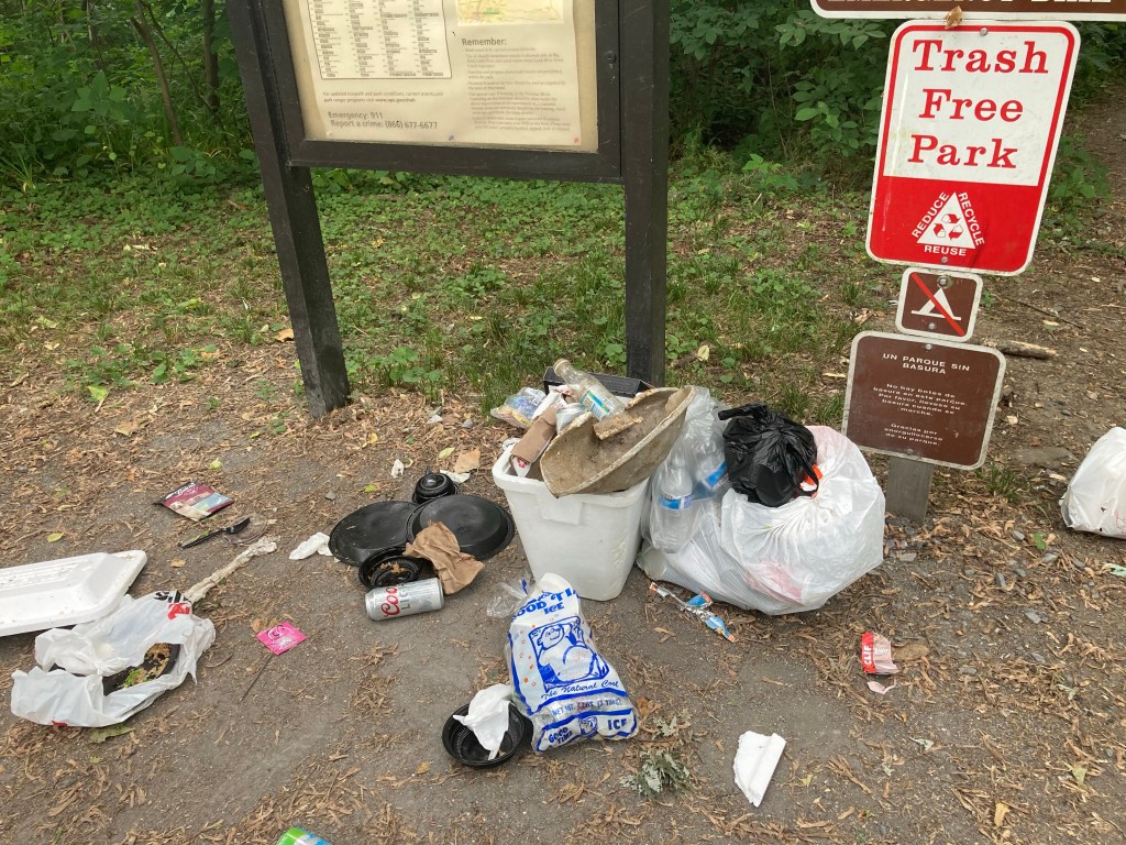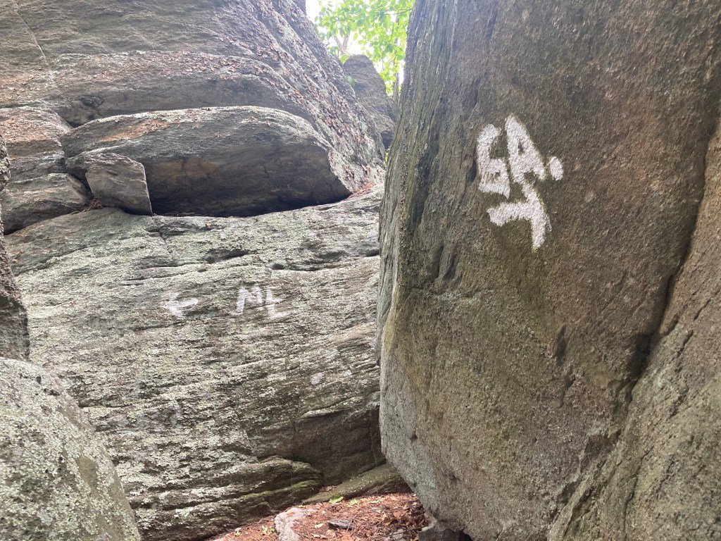 The view from High Rock Ledges the next morning was the same, but it was really sad to see all the graffiti and trash on the trail there. The descent down from there was tough and rocky. It felt like a hint of what I expected to come in Pennsylvania, but that turned out to be the hardest part of the day.