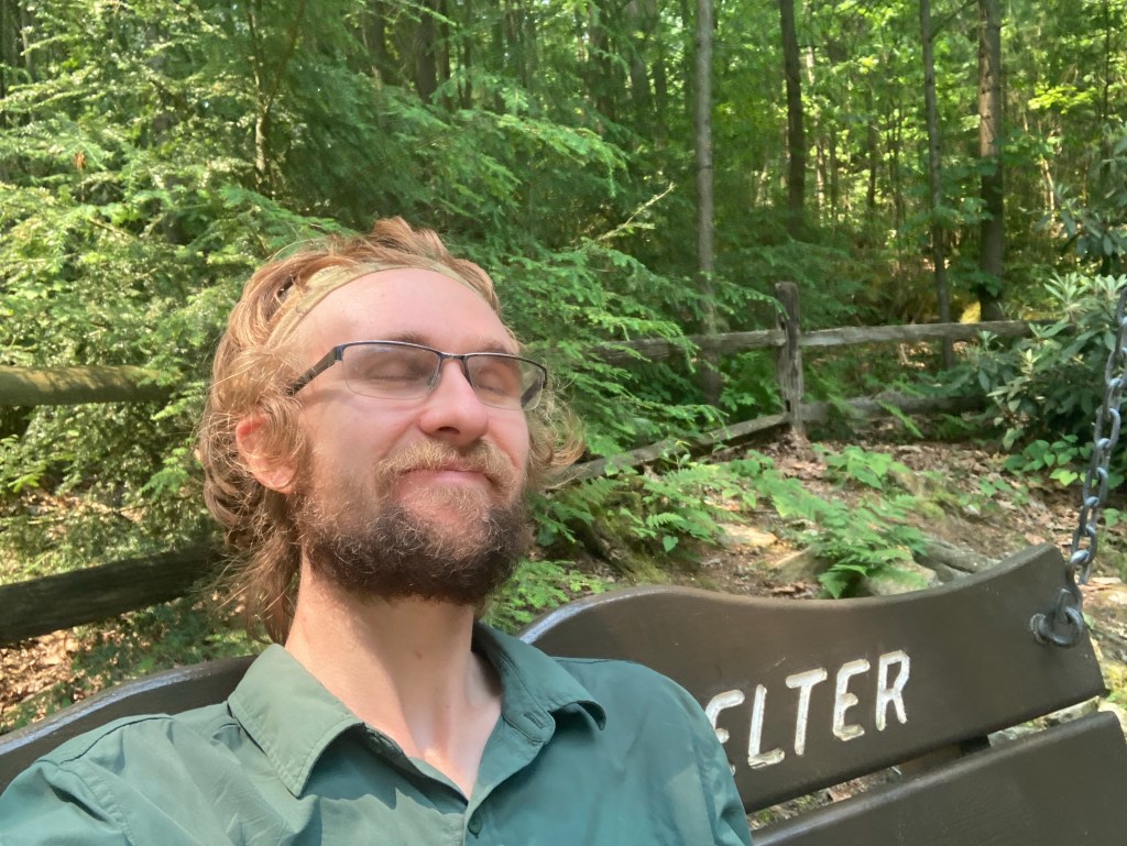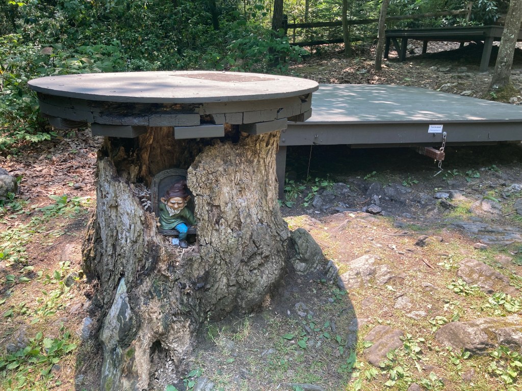 There was no better example of this than Quarry Gap Shelter, where I stopped for elevensies the next day. Holy cow! It was the nicest shelter I had seen on the entire trail, with a swinging bench, flower planters, and more all nestled in a beautiful rhododendron grove.
