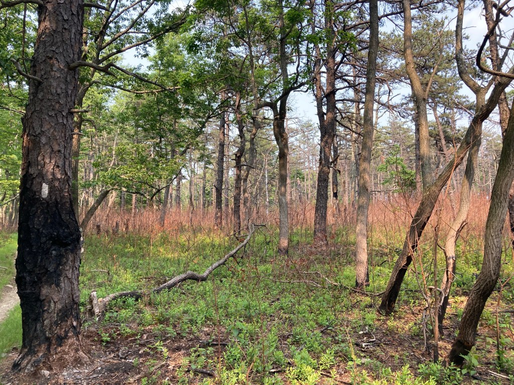 That day was a beautiful and diverse section of trail as I approached the halfway point. I passed by an eerie pine forest, interesting red undergrowth where there had been a controlled burn, and lots of flowers. It made for a wonderful backdrop to cross the official halfway point right at the end of my day!