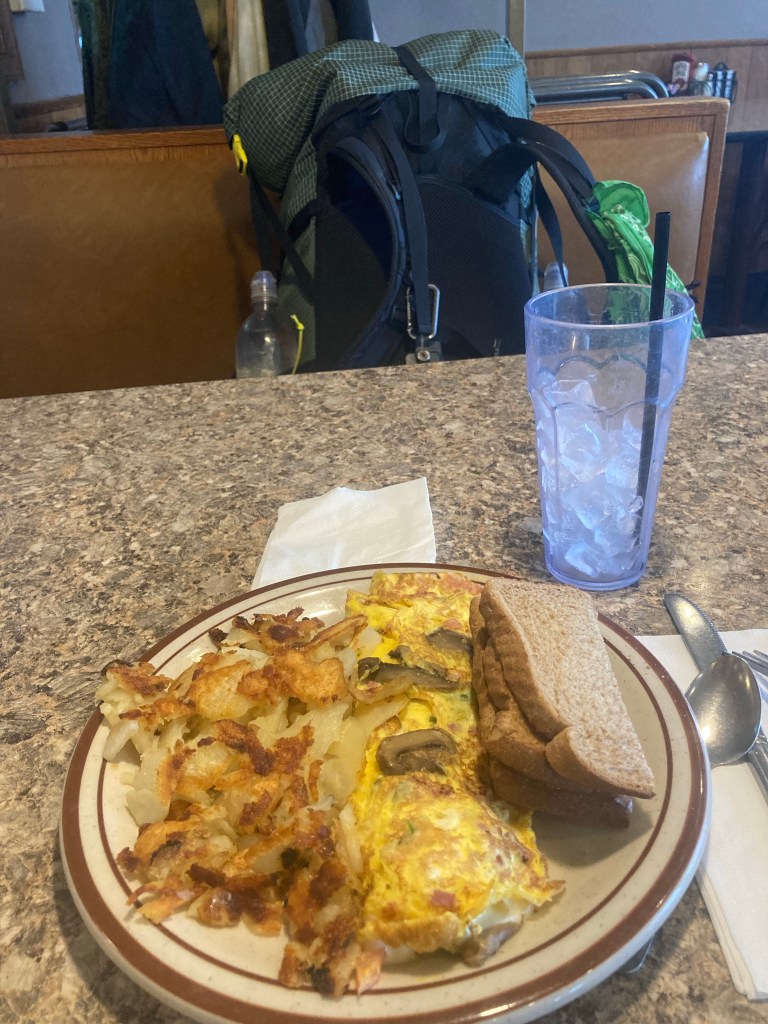 The general store is the site of the famous half gallon challenge. The idea is simple: eat a half gallon of ice cream in one sitting. Easy, right? I was excited to take it on that morning. Way back at the beginning of my hike, I had promised myself that I would prioritize my health and wouldn’t do anything silly with respect to that; in particular, this meant not doing the 4 state challenge, and not trying the half gallon challenge either. Well, at this point I had a pretty good sense of my hiker hunger levels and my limits, and I figured I could take it on.