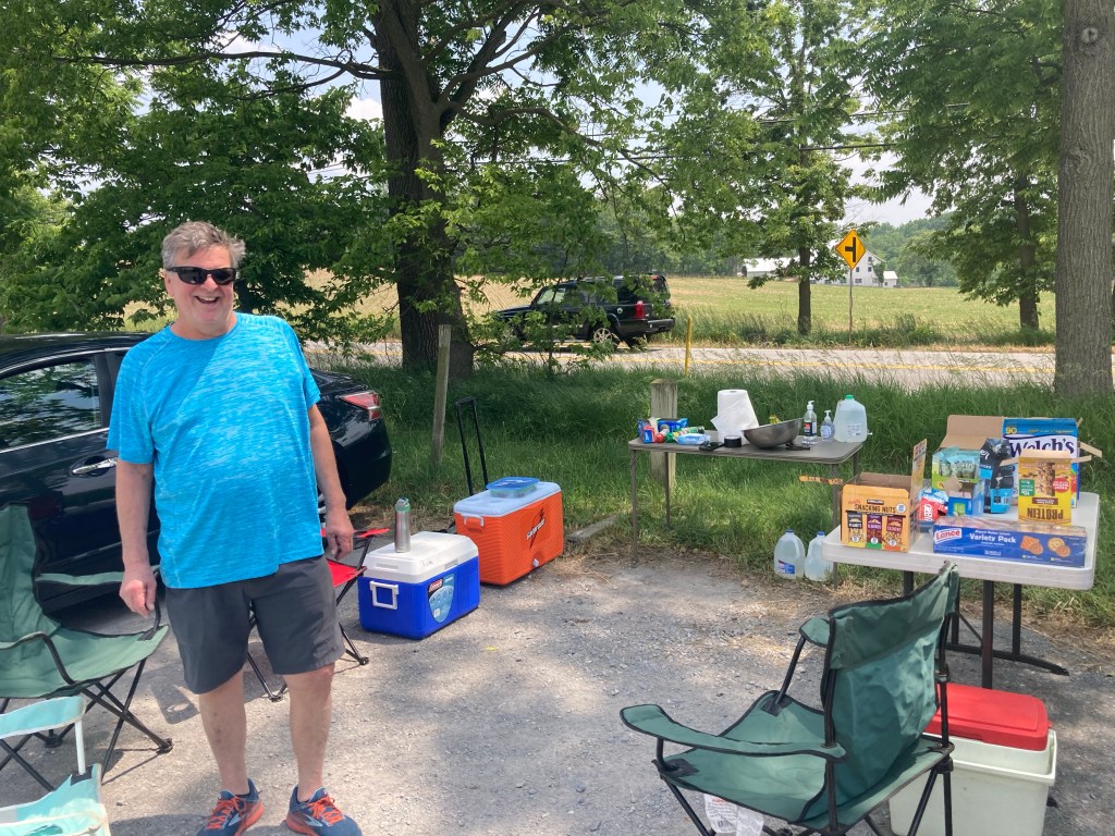 After lunch at the Middlesex Diner across the street from the hotel, I Ubered(!) back to the trail, where I was delighted to find a wonderful trail magic spread courtesy of none other than Cookie’s parents! I only felt a little guilty partaking in the trail magic having yet to hike that day, and having just shown up by car xD It was nice to chat with Cookie’s dad! It was interesting to hear the perspective of the parent of another thru-hiker that I know.