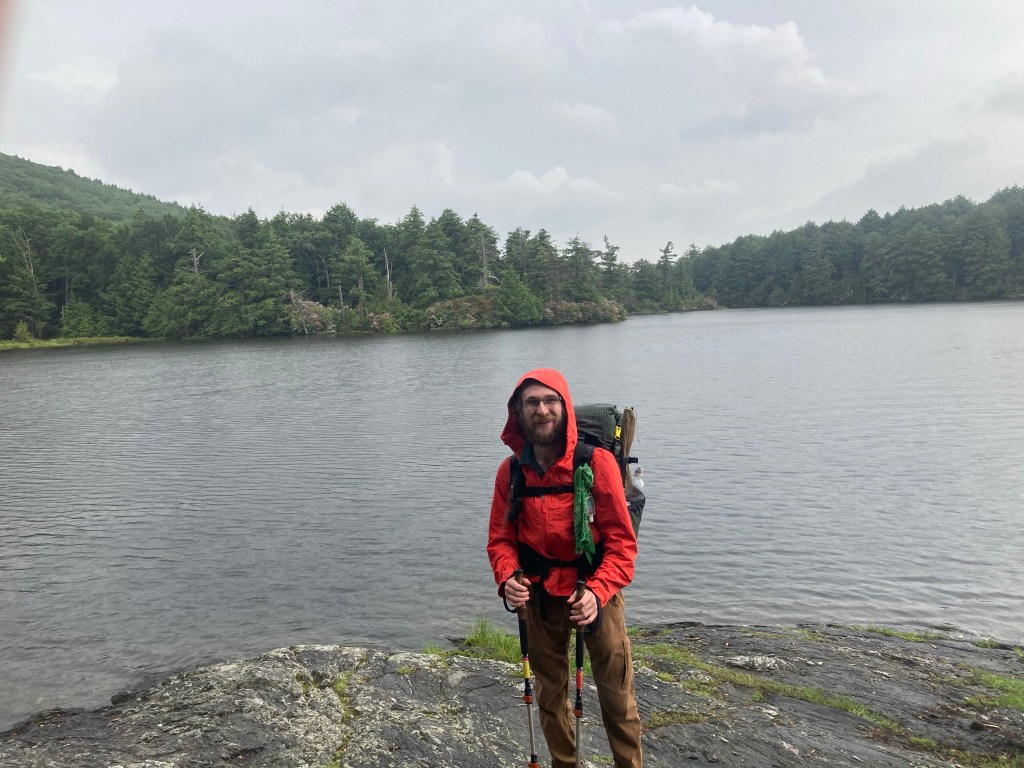 There were plenty more trail friends to be found at Upper Goose Pond Cabin, where I stayed the night. Upper Goose Pond Cabin is an iconic “shelter,” but that word doesn’t do it justice. It’s huge, enclosed, with a nice porch, living room space, and bunks with mattresses and everything. A volunteer caretaker holds down the fort and makes pancakes and coffee for hikers in the morning! The caretaker, Vlobster, turned out to be from Pittsford – another great small-world moment!