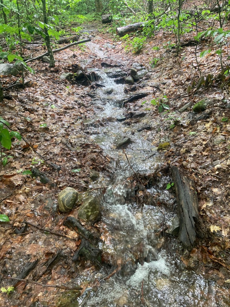 Every stream was overflowing, and absolutely gushing. On four occasions, I had to bushwack up and downstream to try to find a safe place to ford. I crossed in a swift and voluminous rush of knee-deep water. It was treacherous and pretty scary at times – easily the hardest crossings I’ve had yet. It was certainly stressful.