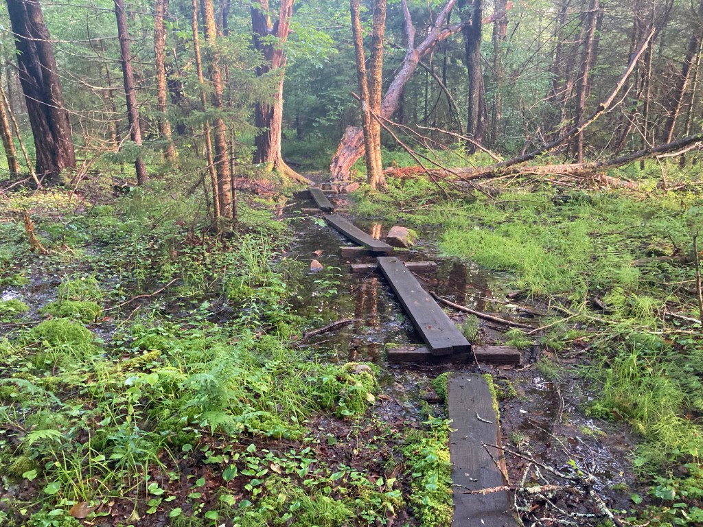 Thankfully, the trail was much improved in the morning. There were no significant fords and far less standing or flowing water in the trail. It had been replaced by more mud, which is possibly more treacherous, but still felt much better. Plus, there were more plank walks to help. It’s amazing what a difference a single day makes.