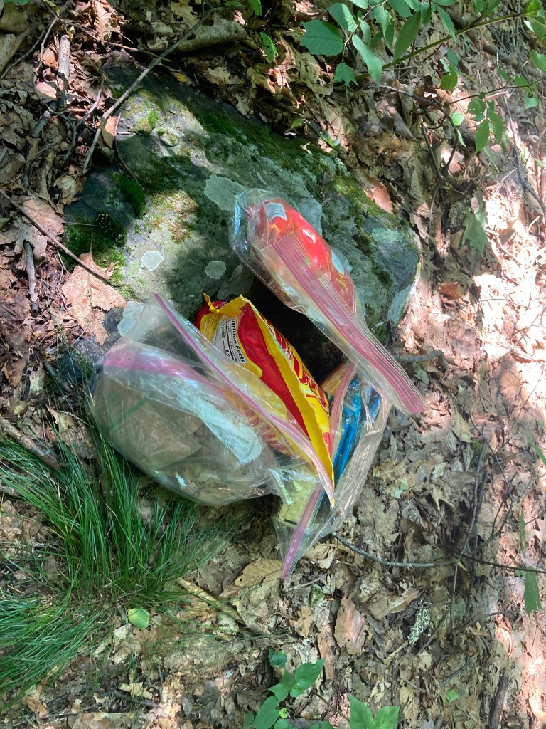 The next day was my last full day in Massachusetts, and it was the most magical of them all. Sort of unusually for a day on the AT, it focused on a single climb: going up and over Mt. Greylock. Mt. Greylock is the tallest point in MA, and the first 3,000-footer on the AT since Shenandoah NP in Virginia. It was a beautiful climb up Greylock, surrounded by mossy conifers (have I mentioned that I love New England?). On the way up the mountain, I got second breakfast from some trail magic that had been left in bags on the side of the trail. This is generally frowned upon, since animals are likely to get in it, so I always have mixed feelings when I see something like that, but of course I’m happy to take advantage of it. If I don’t take it, the critters will, right?