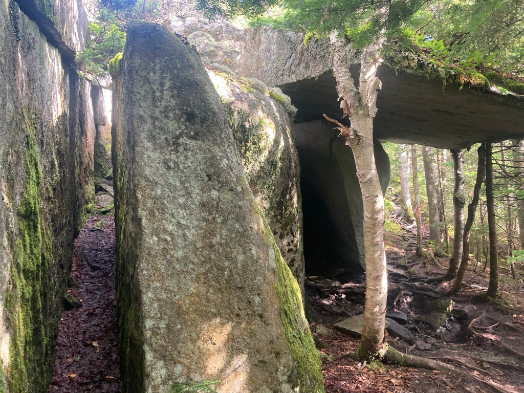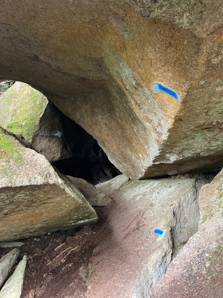 Not long into the day, I took a brief side trail to explore the Caves. This was a unique feature close to the AT: a blue-blazed trail snaking over, under, and around large boulders to climb a hundred feet or so. The trail didn’t really lead anywhere, and there weren’t any views to reward you; this one was all about the journey, not the destination. Nevertheless, I loved it!! I had a lot of fun climbing and squeezing myself through some more tight spots. It reminded me of the best parts of Mahoosuc Notch, except vertical, and infinitely improved since I didn’t have to carry my pack! Between the unique experience and the high bang for my buck, considering how close the Caves were to the AT, it was one of my favorite side trails ever (coming from a certifiable side trail expert).