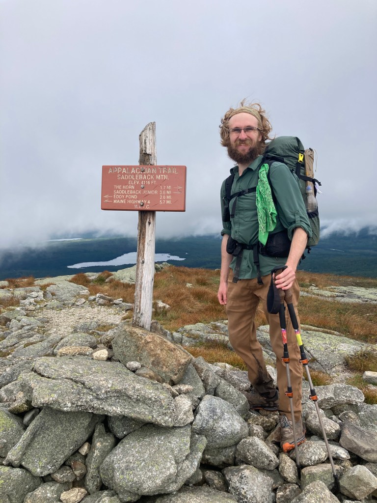 I ran into Geo as we approached the climb of Saddleback Mountain. I had met him a few days earlier, and we hiked most of the rest of the day together. Geo has a very interesting thru-hiking story: he is hiking the AT in week-long sections throughout all of 2023, while still working every other week or so. It’s so cool to meet people who do the AT in all sorts of ways – there’s really no single or “right” way to do it!