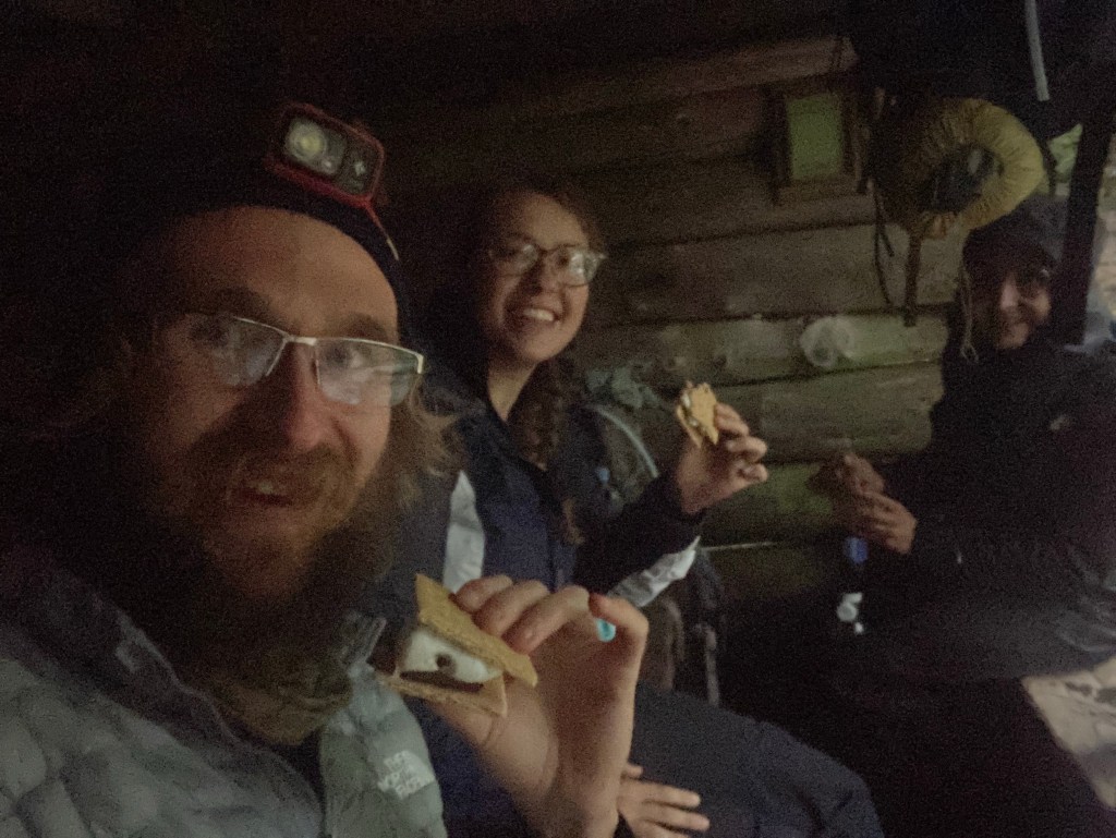 After a tough descent down the mountain and over the amusingly-named Saddleback Junior, I stopped at Poplar Ridge Lean-to, which was my original target for the night. Since it was pretty early, I debated pushing ahead to a campsite a few miles up, where Geo was heading. Meadow and Victory were already set up at the shelter, though, and I was tempted to stay there with them. I was glad I dilly-dallied in deciding, though, because not long after I got there, the skies opened up and a downpour began. That made my decision easy! I gladly set up in the shelter and had a pleasant night there while the rain pounded the roof all night. Victory, Meadow, and I made s’mores on trail, satisfying a trail bucket list item for me, and I enjoyed reading the extensive trivia about the surrounding area and the MATC in the logbook. The trail maintainer in that region has collected and answered questions from hikers at Poplar Ridge Lean-to through the shelter log, and it’s an awesome continuing tradition. Among other things, I learned why the shelters in Maine are uniquely called “Lean-tos” and not “Shelters.” (No particular reason…they are all basically lean-tos, and Maine’s often predated the rest? So it was just a preference thing by the MATC. That’s sorta all I got)