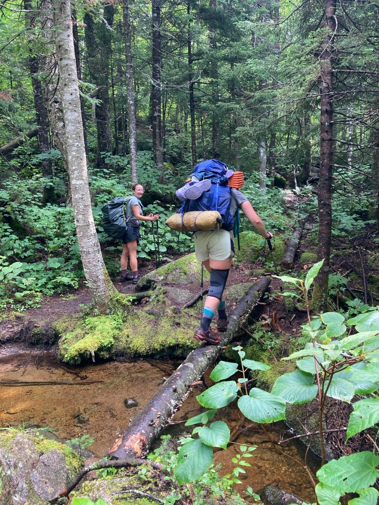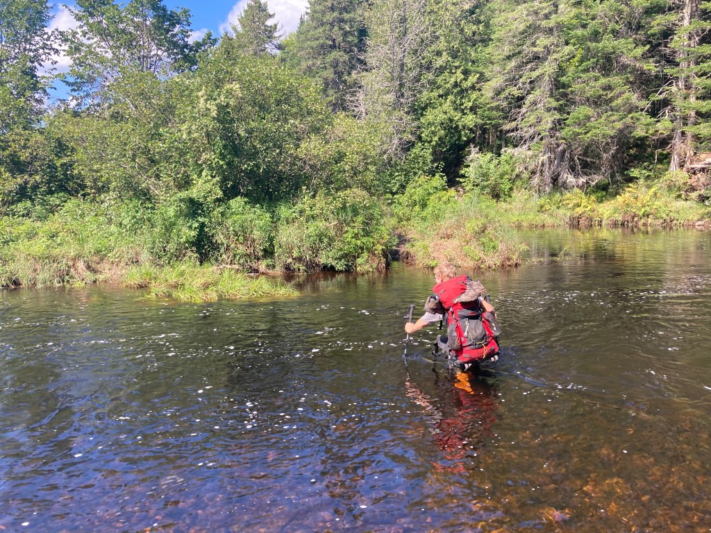 There was one final challenge before heading into my final(!) town stop. Northern Maine is infamous for rugged, remote terrain, a total lack of bridges, and difficult river fords – no hand-holding! Two of the most major fords (as well as several others that day) stood in between me and Monson, ME: the West and East branches of the Piscataquis River. These fords in particular I had heard horrifying things about: a friend hiking in June had nearly drowned fording the river, and even just a few weeks earlier some more friends had to road walk around the river after encountering dangerously high water levels. I was apprehensive as to what I would find, but to my relief, the West Branch appeared calm, beautiful, and not too high. I forded it with Peace Pipe, and found it waist-high – my deepest ford yet, but not too bad. Later, the East Branch of the Piscataquis was even easier, and only knee-deep.