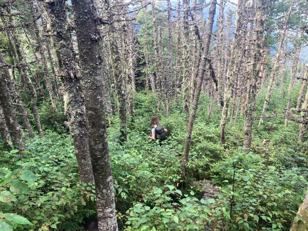 Soon, I took another lengthy and rarely-traveled side trail to Moxie Bald’s gorgeous North Peak. At this point on the AT, wild blueberries had become an endangered species, but in this less trafficked area, bluebs abounded and made for a great snack.
