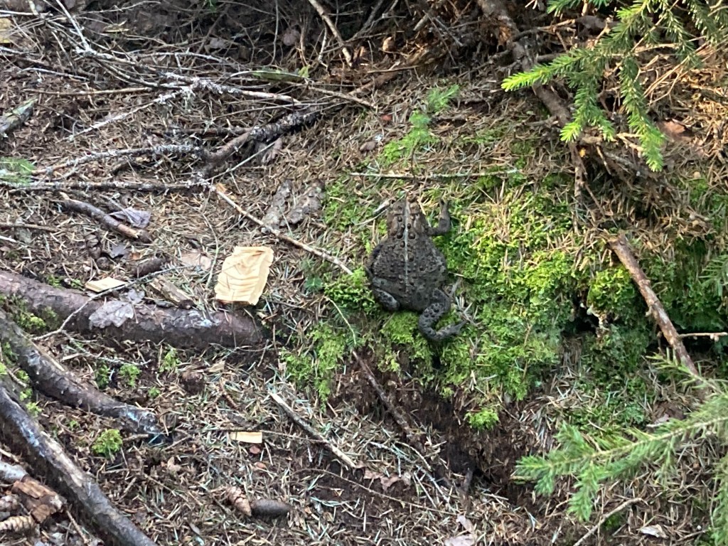 The next day started off with a bang when I came across the first trail magic in what felt like a very long time. Step was a current SOBO thru-hiker who was taking a pause from his hike to be a traveling trail angel extraordinaire. I ended up spending quite a while at what turned out to be a very meaningful trail magic and a fond trail memory. I enjoyed getting to know Step and the Nude Dudes: Cheesefoot, Limp Pickles, Rocket Sauce, Beefcake, and Wizard Spoon. Cheesefoot was carrying a guitar on the trail, and was actually highly prone to use it! I later heard him playing and singing several tunes in his tent. Now, he and Step, who had a “guitalele” of his own, performed for us and jammed while we sang along and appreciated the music. I learned some new songs that really resonated with me, especially at that point on the trail when we were nearing the end of our journeys. It was really fun to have a great bonding experience at this trail magic that spontaneously had making music together as a focus. I left there feeling renewed gratitude for the trail community and excitement for the rest of my hike.