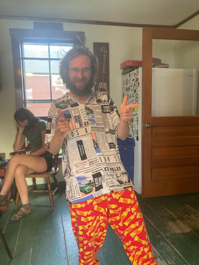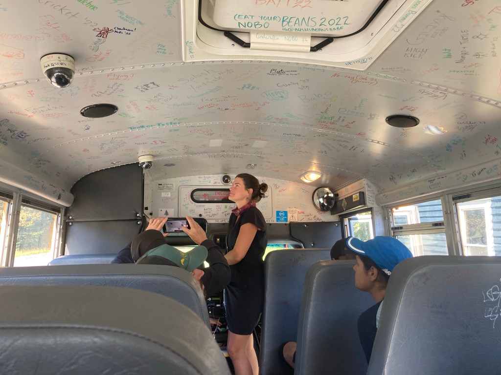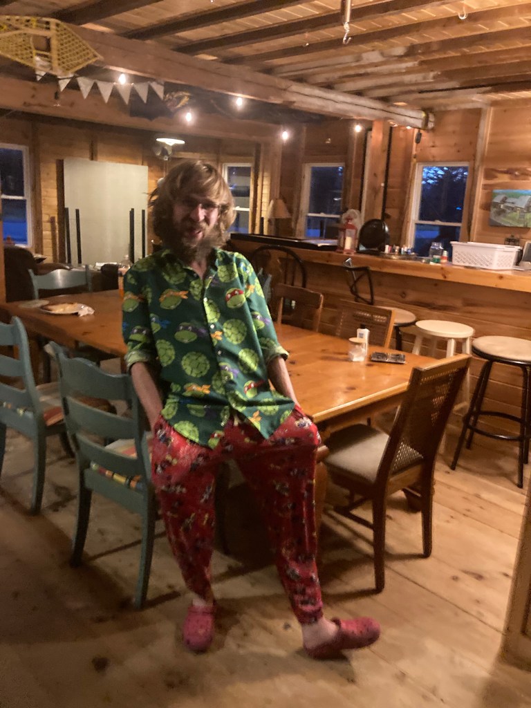I love getting to hostels early. I didn’t have any competition for showers and laundry, and I was able to get my chores done quickly and spend a lovely remainder of my nero day at the hostel. In this case, I even lucked into breakfast leftovers, a delicious take on eggs Benedict with pot roast. The ever-changing breakfast offered at the Maine Roadhouse was just one part of what made it one of my favorite hostels on the AT! It had immaculate rustic vibes, looking like a huge wooden cabin. It was soo Maine. The Jenns (both with two N’s!) that run the place were both super friendly and helpful. Plus, they had an impressive assortment of loaner clothes. I got a lot of compliments on my Ninja Turtles shirt, but I was more excited about the Mickey Mouse pants. There was also a decommissioned school bus that they used as a shuttle that hikers could sign.
