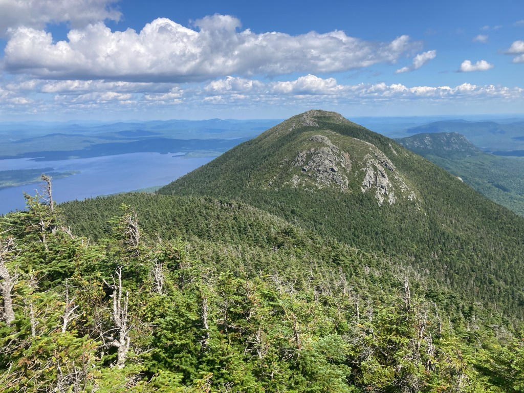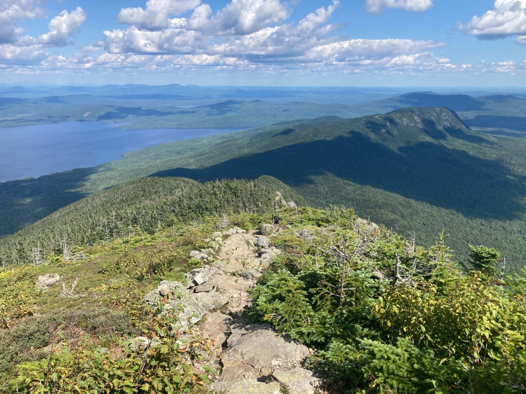 It only got better as I passed South Horn and scaled Bigelow’s West and Avery Peaks. I could see the High Peaks that I had done over the last few days, including the Crockers and Sugarloaf. Flagstaff Lake sprawled to the north. Far in the distance, I could see all the way back to Mt. Washington. And in the other direction, I could just make out Mt. Katahdin through the haze! That’s right, the end was in sight for the first time. Honestly, since I could truly barely see it, I didn’t get too excited, and it felt like a technicality more than anything else.
