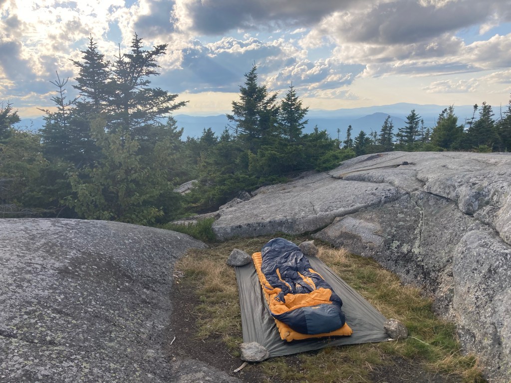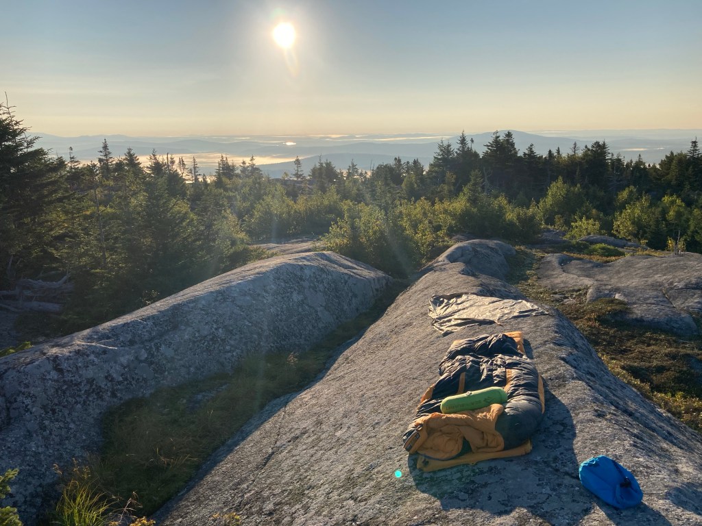 I found a perfect spot for cowboy camping at the summit, a small grassy area nestled in between large rock sheets to shelter me from the wind. I was glad I had gotten there when I did, because three more people came up later with the same idea, and we all found spots to share the summit. Moxie Bald was one of my favorite spots I had ever stayed and one of my favorite spots on the AT. “I love it here & I love my life,” I wrote that night.