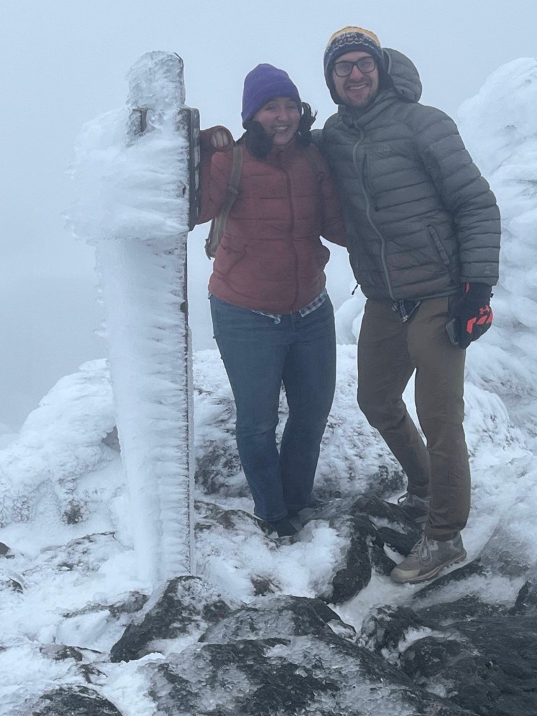 In October, Macy’s parents came to visit as well. Among other things, we all went up to the Whites and took the Mt. Washington Cog Railway up to the top of Washy. It was a cool experience! Having only hiked there in the past, it was a bizarre feeling to sit down in a train and then get up suddenly at 6,000 feet – especially since we couldn’t see anything in between. The weather was a lot different than the last time I was up there! It was completely socked in, freezing cold and bitterly windy (it is known for it, after all). It was cool to see all the snow and ice up there in mid-October, especially the rime ice on the summit sign. Standing on the Mt. Washington summit was technically my first return to the AT :’)