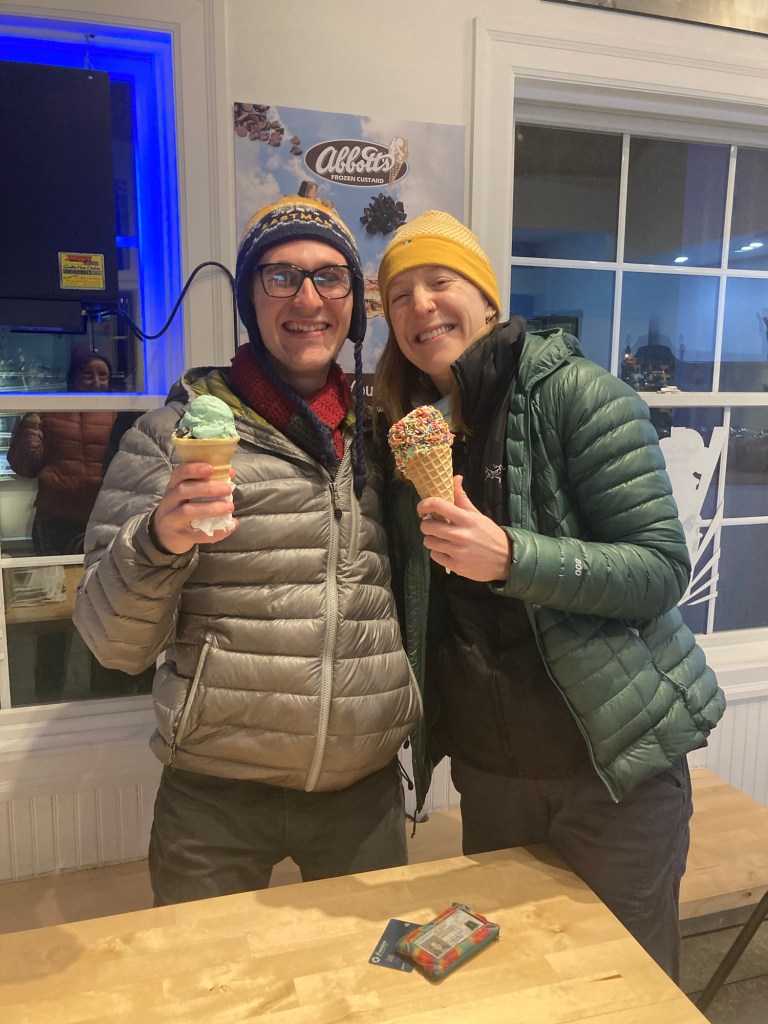 I was very pleased to see several trail friends in the “real world” after our hikes – many of whom I hadn’t seen in months, since the early sections of the AT! Malka, Sticky, and Pickles came to my welcome back party in Boston. I met up with Legs and Wings in the city, and in fact saw Wings a few times. I saw Gravity perform with her band! It wasn’t just Boston meetups, either. Over Thanksgiving, Scoops met up with me and Macy in our shared hometown, and we got ice cream – we got scoops with Scoops! We were able to see Victory and her husband Nick in Rochester, too, when they stayed with us over the total eclipse in April. I was able to meet up with Mystery Man a couple times, hike with him in the Whites, and even stay at his lovely home in New Hampshire. Yes, I absolutely still call them by their trail names.